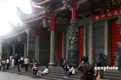 一月十二日是臺灣第七屆“立委”選舉日,臺北市較大的四一三號“立委”選舉投票所就設(shè)在臺灣非常知名的一所關(guān)帝廟“行天宮”中。圖為排隊(duì)進(jìn)入“行天宮”的民眾,該投票的投票,該拜廟的還拜廟,兩不相干。中新社發(fā) 陳立宇 攝
