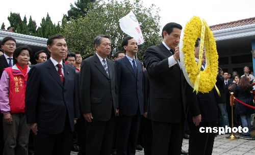 一月十三日,蔣經(jīng)國(guó)逝世二十周年,在桃園縣長(zhǎng)朱立倫等人陪同下,中國(guó)國(guó)民黨二00八年臺(tái)灣“大選”參選人馬英九和參選搭檔蕭萬(wàn)長(zhǎng),專(zhuān)程到桃園縣頭寮的蔣經(jīng)國(guó)陵寢拜謁。中新社發(fā) 孫自法 攝