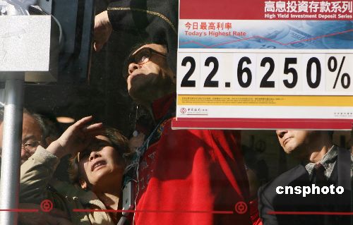 一月二十二日,港股跌二千零六十一點(diǎn)收市,創(chuàng)歷來最大點(diǎn)數(shù)跌幅。圖為當(dāng)日香港股民在銀行關(guān)注股市最新動態(tài)。中新社發(fā) 武仲林 攝