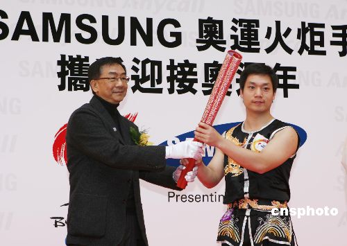 一月二十六日,北京奧運(yùn)會圣火傳遞的全球合作伙伴三星電子在香港時(shí)代廣場舉行發(fā)布活動,揭曉香港及澳門的公眾、名人及運(yùn)動員組奧運(yùn)火炬手名單。中新社發(fā) 武仲林 攝