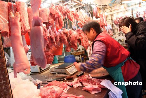 一月二十九日,香港市民在街市選購新鮮豬肉。臨近春節(jié),各類供港食品受內(nèi)地大風雪影響價格上漲,豬肉零售價再次飆升至每斤四十至四十四元。香港食物及衛(wèi)生局局長周一岳表示,中央已采取緊急調(diào)配措施,務求把內(nèi)地大風雪對供港食品的影響減至最低。中新社發(fā) 洪少葵 攝