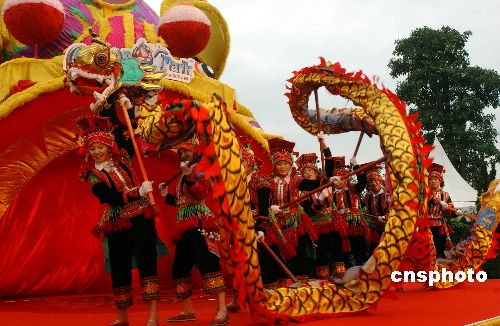 一月三十一日,穿上傳統(tǒng)民族服式、來自云南的女子舞龍隊在香港海洋公園演繹金龍獻瑞,向游客及市民拜年。當(dāng)日,香港海洋公園公布在農(nóng)歷新年期間,將推出冰上百老匯、金銀滿冰宮、女子舞龍大匯演、醒獅賀歲等八十八個新春熱點。中新社發(fā) 蔡蔓莉 攝