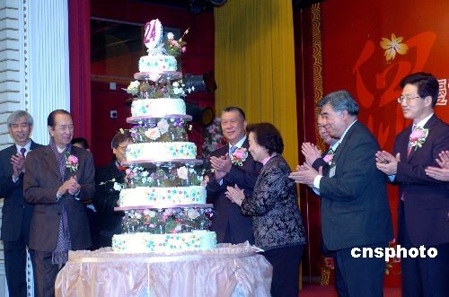 二月二十二日,澳門特首何厚鏵等嘉賓在萬豪軒酒家切慶祝蛋糕,祝賀澳門街坊會聯(lián)合總會成立二十四周年。中新社發(fā) 史利 攝