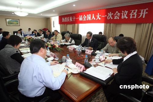 3月5日,出席十一屆全國(guó)人大一次會(huì)議的澳門(mén)代表團(tuán)舉行全體會(huì)議,審議政府工作報(bào)告。中新社發(fā) 張宇 攝