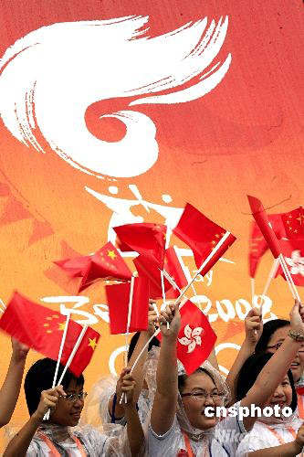 當(dāng)?shù)貢r(shí)間五月二日十點(diǎn)半,2008北京奧運(yùn)圣火中國境內(nèi)首站香港傳遞正式開始。眾多香港學(xué)生手執(zhí)國旗、區(qū)旗在尖沙咀火炬起跑地歡呼。中新社發(fā) 王麗南 攝