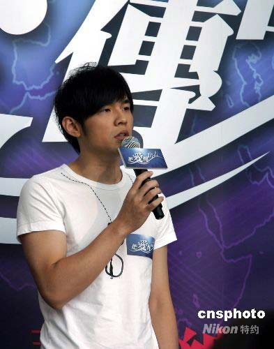臺(tái)灣演藝界人士將于18日晚共同參與四川賑災(zāi)晚會(huì)“把愛傳出去”。張小燕、張菲、吳宗憲、蔡康永等知名藝人接到邀請(qǐng)并積極投入晚會(huì)籌備工作,圖為周杰倫號(hào)召民眾以及更多藝人參與募款活動(dòng)。中新社發(fā) 劉舒凌 攝