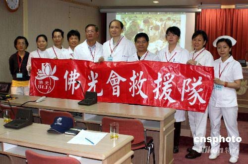 四月十九日下午,臺灣佛光山國際佛光會的一支由醫(yī)生和護士義工組成的十人醫(yī)療救援隊,啟程前往四川協(xié)助救災(zāi)。他們還帶去六百公斤的醫(yī)療器具和藥品。圖為救援隊行前合影。中新社發(fā) 陳立宇 攝