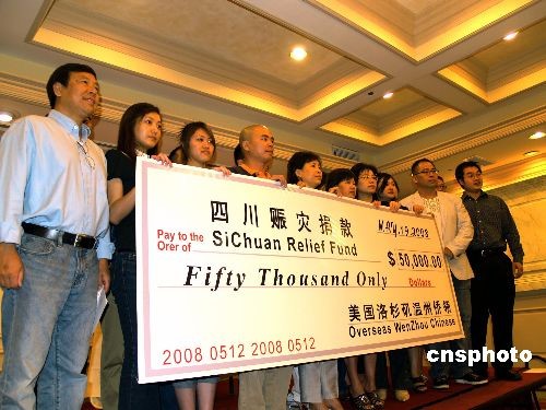 洛杉磯溫州僑領(lǐng)向汶川地震災(zāi)區(qū)募款5萬6千美金