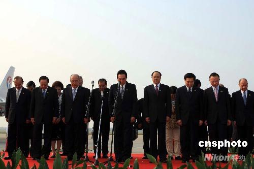 吳伯雄、陳云林等在機(jī)場為四川地震遇難者默哀