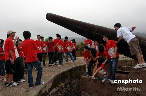 參加兩岸中學(xué)生夏令營(yíng)的馬祖中學(xué)師生參觀長(zhǎng)門炮臺(tái)