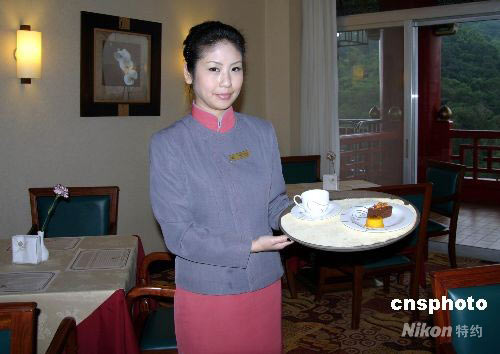 創(chuàng)立于一九五二年的圓山大飯店,是臺北市的經(jīng)典地標(biāo),其VIP菁英咖啡室提供宋美齡鐘情的巧克力西點。據(jù)介紹,中西合璧、充滿濃濃“老上海”情調(diào)的菜品是圓山飯店一絕。中新社發(fā) 許曉青 攝