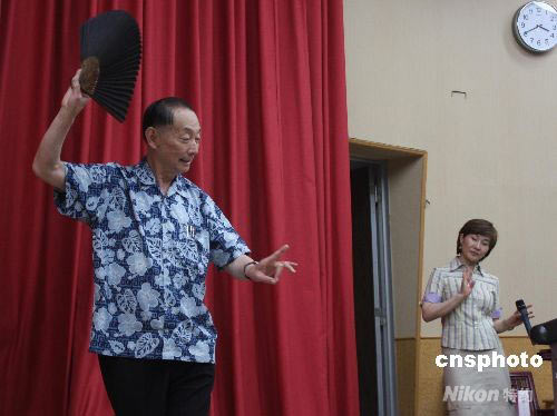 京劇大師梅蘭芳之子梅葆玖(左)第三次訪問臺灣,六月二十一日應(yīng)邀在臺北科技大學(xué)演講時,應(yīng)京劇戲迷要求表演《霸王別姬》片斷,其臺灣女弟子魏海敏(右)作陪并在一旁認(rèn)真學(xué)習(xí)揣摩。中新社發(fā) 耿軍 攝