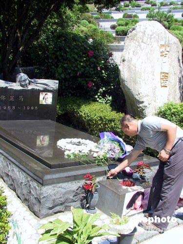 七月十二日,大陸居民赴臺旅游北京首發(fā)團(tuán)在臺展開最后一天游覽行程。首發(fā)團(tuán)來到位于臺北縣金寶山的鄧麗君墓園參訪。團(tuán)員們紛紛向墓主人獻(xiàn)花鞠躬,表達(dá)追思之情。鄧麗君曾經(jīng)風(fēng)靡海峽兩岸,其甜美的歌聲給大陸同胞印象深刻。中新社發(fā) 徐長安 攝