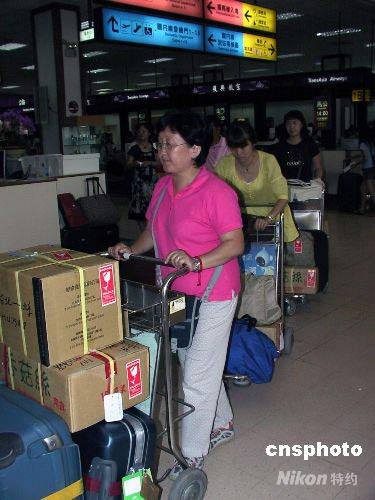 十天前赴臺旅游的大陸首發(fā)團(tuán)七百多人,7月13日陸續(xù)搭乘海南航空、南方航空、東方航空和中國國際航空公司周末包機(jī)返回北京、廣州和上海,結(jié)束了時(shí)隔近六十年后,大陸居民赴臺旅游首發(fā)團(tuán)的十日環(huán)島行程。十天時(shí)間里,首發(fā)團(tuán)在臺灣同胞協(xié)助下,漫步阿里山、日月潭,暢游墾丁,游覽花蓮太魯閣,看盡寶島風(fēng)光,也近距離接觸臺灣風(fēng)土人情、人文景觀,開啟了兩岸民眾的親密接觸。中新社發(fā) 徐長安 攝