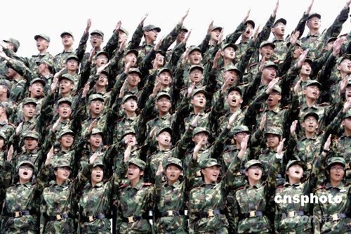 七月二十七日,為期十五天的第四屆“香港青少年軍事夏令營”結(jié)業(yè)典禮在香港新界新圍軍營舉行。圖為學員們演唱軍營歌曲。中新社發(fā) 張勤 攝