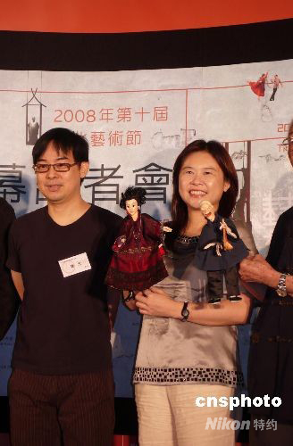 二00八臺北藝術(shù)節(jié)將于本月七日至九月十四日在臺灣舉行,來自島內(nèi)外的八個(gè)表演團(tuán)隊(duì)將參加三十場藝術(shù)演出以及二十六場創(chuàng)作對談和講座。圖為四日舉行的記者會(huì)上,臺北市文化局長李永萍與畫家?guī)酌椎人囆g(shù)家合影。中新社發(fā) 曾嘉 攝