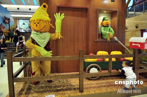 圖:香港商場(chǎng)布置鬼怪造型迎萬(wàn)圣節(jié)
