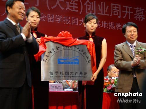 9月24日,由國家科技部、教育部、人力資源和社會保障部、國務院僑辦、中國科學院、歐美同學會·中國留學人員聯(lián)誼會和遼寧省政府聯(lián)合主辦的2008中國海外學子遼寧(大連)創(chuàng)業(yè)周在大連開幕,開幕式上還舉行了歐美同學會·中國留學人員聯(lián)誼會留學報國大連基地揭牌儀式。中新社發(fā) 宋太盛 攝