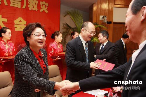 9月28日,國務(wù)院僑辦在北京召開僑辦系統(tǒng)抗震(雪)救災(zāi)先進表彰電視電話會議,對全國僑辦系統(tǒng)在抗震(雪)救災(zāi)斗爭中表現(xiàn)突出的50個先進集體和100名先進個人予以表彰。中新社發(fā) 鄭雄增 攝