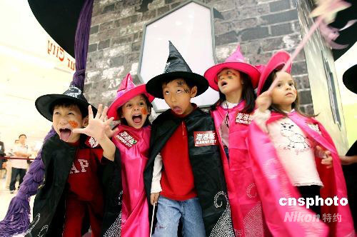 十月七日,香港海港城舉行迎接萬圣節(jié)活動,一群調皮的小朋友與魔法師跳舞狂歡,營造氣氛。中新社發(fā) 洪少葵 攝