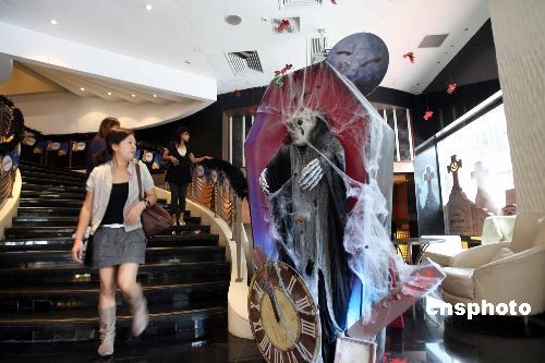 一年一度的萬(wàn)圣節(jié)即將到來(lái),在香港鬧市街頭甚至酒店商場(chǎng),到處可見(jiàn)擺設(shè)中西文化交匯的趣怪裝飾,商家借西方節(jié)日,營(yíng)造熱鬧氣氛,招徠顧客。中新社發(fā) 洪少葵 攝