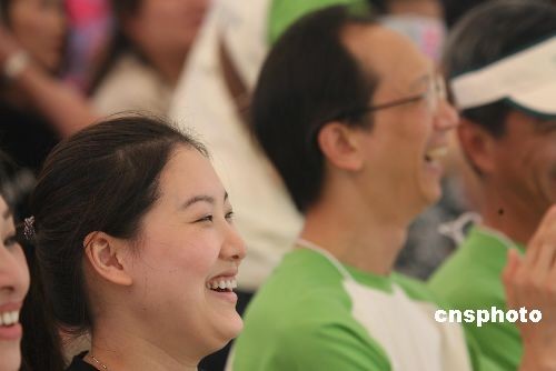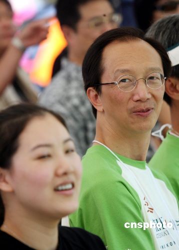 十月二十五日,國際小母牛香港分會(huì)董事局主席梁錦松、小母牛組織愛心大使伏明霞在香港維多利亞公園出席小母!案偛缴菩卸懔惆恕贝壬票荣,為四川災(zāi)區(qū)重建工作籌款。中新社發(fā) 武仲林 攝