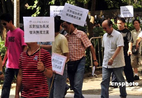 十月二十八日,香港逾百名的士司機(jī)到立法會(huì)外請?jiān),要求撤銷“短加長減”方案。方案將市區(qū)的士起價(jià)由十六元加至十八元,而乘搭的士長途車,則只需支付現(xiàn)時(shí)約八折的車資。中新社發(fā) 譚達(dá)明 攝