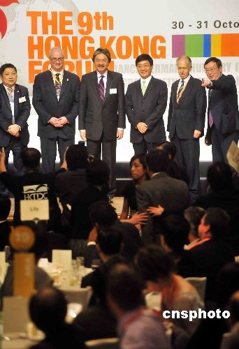 十月三十日,香港財(cái)政司司長曾俊華(左三)出席第九屆香港論壇的歡迎午宴。香港論壇由貿(mào)發(fā)局主辦,旨在協(xié)助香港公司拓展關(guān)系,促成合作。中新社發(fā) 譚達(dá)明 攝
