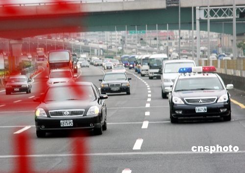 11月3日8時(shí)許,海基會(huì)出動(dòng)車隊(duì)前往機(jī)場,迎接海協(xié)會(huì)會(huì)長陳云林一行訪臺(tái)。圖為警方對前往機(jī)場的高速路管制交通。中新社發(fā) 黃少華 攝