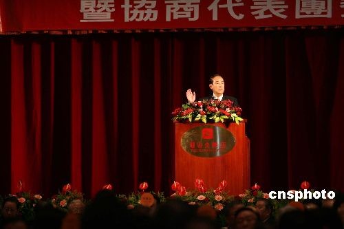 十一月五日中午,臺灣親民黨主席宋楚瑜在臺北圓山飯店宴請海協(xié)會會長陳云林一行。中新社發(fā) 洪少葵 攝