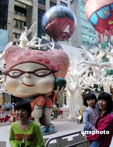 十一月十六日,香港市民和游客興高采烈地在時代廣場圣誕花園前留影。圣誕節(jié)前夕,香港著名年輕插畫師Carrie Chau將時代廣場設計成別致的圣誕花園,場內有拿著喇叭的小孩、巨型氣球、閃閃發(fā)光的巨型大樹和立體雕塑公仔,為繁華的銅鑼灣鬧市帶來一片祥和歡愉的氣氛。中新社發(fā) 洪少葵 攝