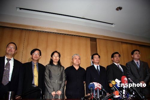 圖為陳云南(中)等“特別偵查組”七位檢察官準(zhǔn)備回答記者提問。