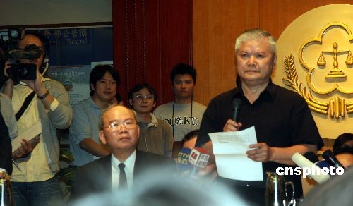 臺灣“檢察總長”陳聰明(左一)主持下午的新聞發(fā)布會,特別偵查組發(fā)言人陳云南(右一)向媒體介紹了偵查結(jié)果及長達二百零九頁的起訴書基本內(nèi)容,臺灣檢方依“貪污治罪條例”等罪將陳水扁等十四人提起公訴。