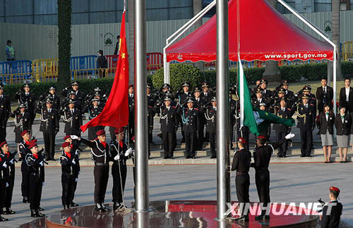 12月20日,澳門特區(qū)政府在金蓮花廣場舉行隆重的升旗儀式,慶祝澳門回歸祖國9周年。澳門特區(qū)行政長官何厚鏵、中央政府駐澳聯(lián)絡(luò)辦主任白志健、外交部駐澳特派員公署特派員盧樹民,以及特區(qū)政府各部門官員、社會(huì)各界代表逾500人出席升旗儀式。
