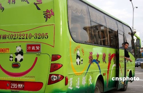 12月26日,一些印有大熊貓圖案的旅游公司客車現(xiàn)身臺北街頭。中新社發(fā) 陳立宇 攝