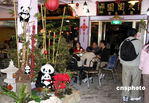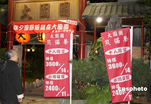 隨著大陸贈(zèng)臺(tái)大熊貓團(tuán)團(tuán)、圓圓已經(jīng)來(lái)臺(tái),臺(tái)灣臺(tái)北縣深坑鄉(xiāng)出現(xiàn)一家“大團(tuán)圓”飯店。元旦期間,該店別出心裁推出的“熊貓餐”吸引顧客。中新社發(fā) 陳立宇 攝