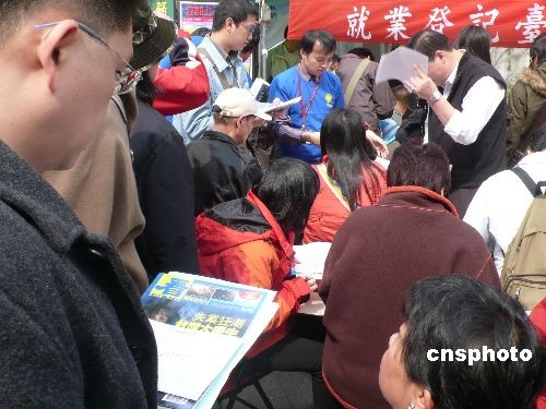 大環(huán)境經(jīng)濟(jì)不景氣,臺(tái)灣去年十二月失業(yè)率超過(guò)百分之五,失業(yè)人口近五十無(wú)萬(wàn)。“主計(jì)處”對(duì)今年經(jīng)濟(jì)成長(zhǎng)率的預(yù)測(cè)為負(fù)百分之二點(diǎn)九七。臺(tái)北市政府勞工局在二十一日舉行了一場(chǎng)就業(yè)博覽會(huì),釋出兩千多個(gè)工作職位,并提供職業(yè)訓(xùn)練課程供民眾申請(qǐng)。中新社發(fā) 路梅 攝