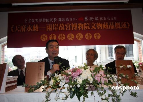 北京故宮博物院院長鄭欣淼的新作《天府永藏——兩岸故宮博物院文物藏品概述》已由臺灣藝術家出版社出版。圖為3月3日下午,藝術家出版社主辦的新書發(fā)表會記者會(右三為鄭欣淼)。中新社發(fā) 陳立宇 攝