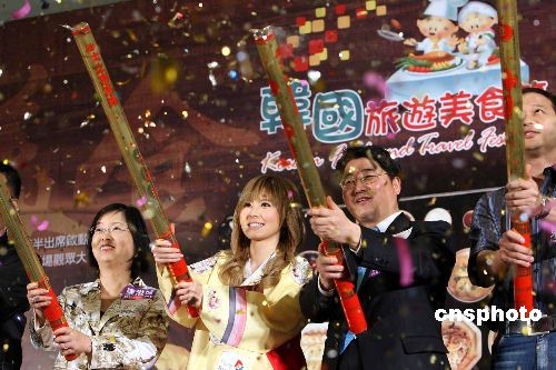 三月二十一日,由韓國(guó)觀光公社主辦的“韓國(guó)旅游美食節(jié)”在香港東港城舉行。人氣歌手傅穎穿著韓服參與主持啟動(dòng)儀式,并演唱新歌。中新社發(fā) 洪少葵 攝