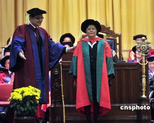 三月二十七日,香港大學(xué)舉行第一百八十屆學(xué)位頒授典禮。港區(qū)人大常委范徐麗泰獲頒名譽(yù)社會(huì)科學(xué)博士學(xué)位。中新社發(fā) 譚達(dá)明 攝