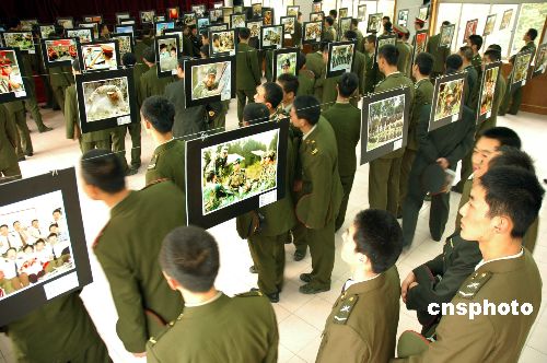 10月18日,由濟(jì)南軍區(qū)某部組織舉辦的慶祝黨的“十七大”攝影書畫展開幕。近兩百幅生動(dòng)的照片和照片背后一個(gè)個(gè)感人的故事。中新社發(fā) 梁志杰(部隊(duì)) 攝