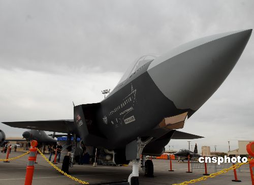 美國十一月中旬在內(nèi)華達(dá)州內(nèi)利斯空軍基地舉行紀(jì)念空軍成立六十年大規(guī)模飛機(jī)展示中,未來主力戰(zhàn)機(jī)F-35“閃電2聯(lián)合攻擊戰(zhàn)斗機(jī)”的公開亮相最為矚目。這種多國合作研制的新一代隱秘戰(zhàn)術(shù)飛機(jī),將更新裝備美國空軍、海軍和海軍陸戰(zhàn)隊(duì),以及英國皇家海軍與皇家空軍等多國部隊(duì)。中新社發(fā) 賈國榮 攝