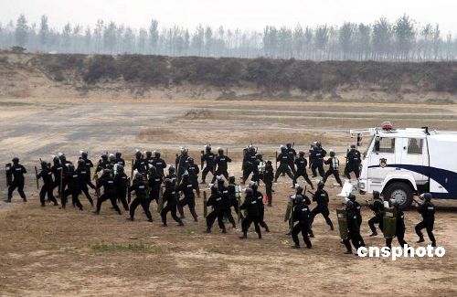 十一月十四日,鄭州特巡警支隊的特警隊員們在緊張地訓練,備戰(zhàn)于十二月上旬舉行的全省特警大比武。據悉,此次大比武將涉及到法律、法規(guī)、一千五百米武裝越野、手槍胸環(huán)靶射擊、八五或八八式狙擊步槍射擊等。該特巡警支隊自今年七月份組建以來,即擔負起特警反恐、處突的職能。中新社發(fā) 李志全 攝
