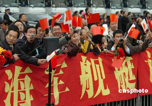 11月28日上午10點,中國海軍導彈驅(qū)逐艦“深圳”號抵達日本東京晴海碼頭開始對日本進行正式友好訪問,日方舉行了盛大的歡迎儀式。中新社發(fā) 滕劍峰 攝
