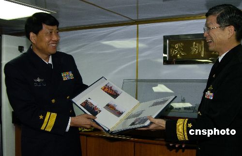 12月1日,“深圳”號結束對日本為期四天的友好訪問啟程歸國。啟航前,日本海上自衛(wèi)隊官員紛紛登艦與艦艇官兵話別。中新社發(fā) 朱沿華 攝