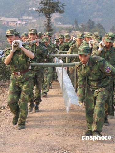 2月14日,解放軍某部官兵在江西宜春市天臺(tái)鎮(zhèn)雜木坑搶運(yùn)電力塔材上山頂。雜木坑是江西500千伏羅安線在宜春市境內(nèi)最艱難的搶修地段,南京軍區(qū)某部200多名官兵以山地接力的方式,將重達(dá)42噸的塔材運(yùn)上293號(hào)、294號(hào)鐵塔,在雜木坑打了一場“攻堅(jiān)戰(zhàn)”。中新社發(fā) 鄒海斌 攝