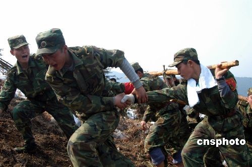 圖:南京軍區(qū)“硬骨頭六連”在江西搶修電網