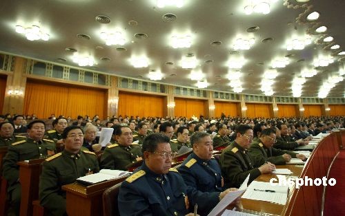 圖:解放軍委員參加全國政協(xié)十一屆一次會議開幕會