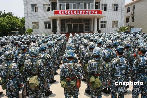 圖:中國(guó)海軍陸戰(zhàn)隊(duì)舉行抗震救災(zāi)誓師大會(huì)
