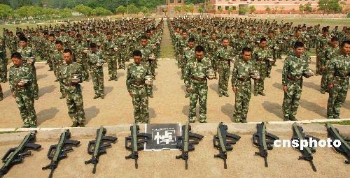 5月19日14時(shí)28分,武警駐無錫某部官兵在訓(xùn)練場(chǎng)向汶川大地震遇難同胞默哀3分鐘。當(dāng)天,武警部隊(duì)全體官兵在各自崗位上以不同方式向地震遇難者致以深切哀悼。據(jù)武警指揮中心5月16日統(tǒng)計(jì),在這次四川抗震救災(zāi)行動(dòng)中,武警部隊(duì)已出動(dòng)近30000名官兵,共轉(zhuǎn)移、救治群眾8.9萬余人,搜救、挖掘被壓埋群眾6270人,目前全軍和武警部隊(duì)捐款已達(dá)1.5億多元。中新社發(fā) 李 杰 攝